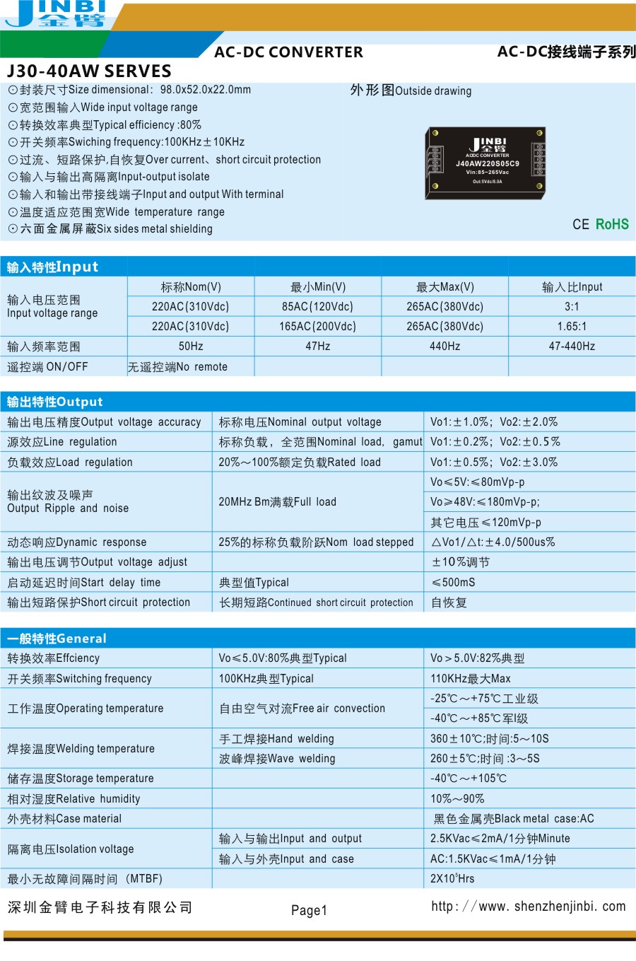 ⊙开关频率Swiching frequency:100KHz±10KHz