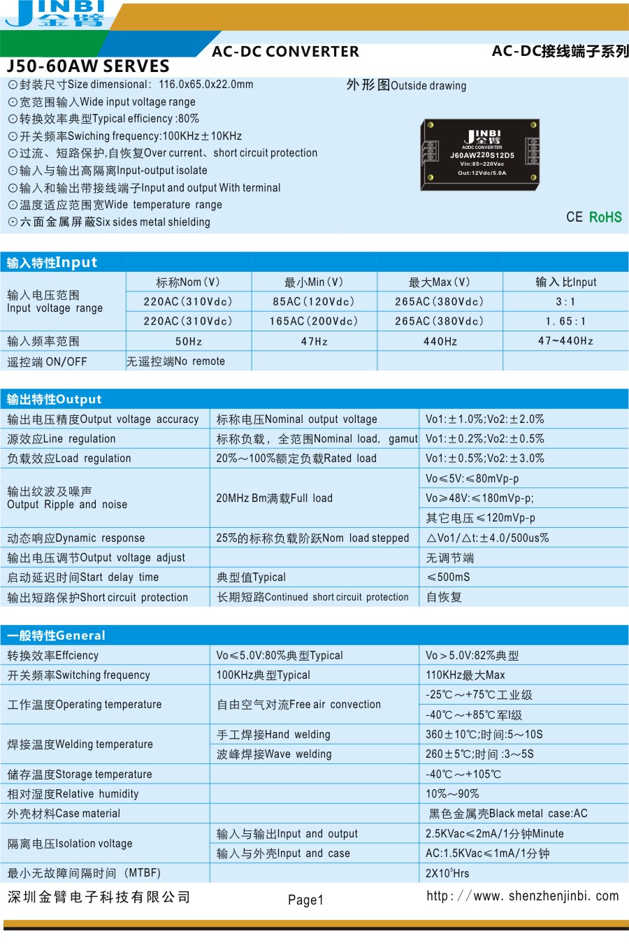 ⊙过流、短路保护,自恢复Over current、short circuit protection