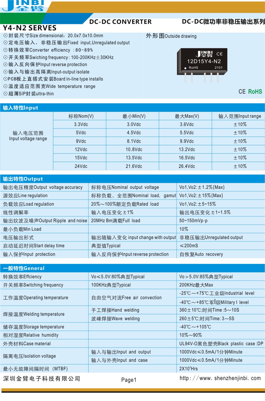 ⊙定电压输入,非稳压输出Fixed input,Unregulated output