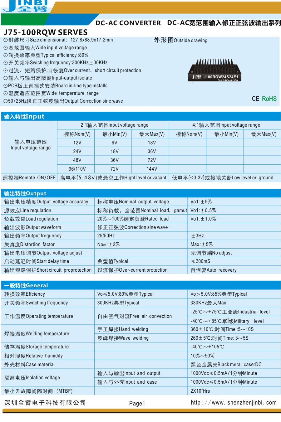 ⊙过流、短路保护,自恢复Over current、short circuit protection