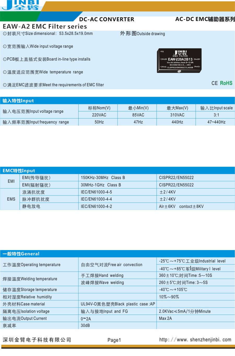 ⊙满足EMC滤波要求Meet the requirements of EMC filter