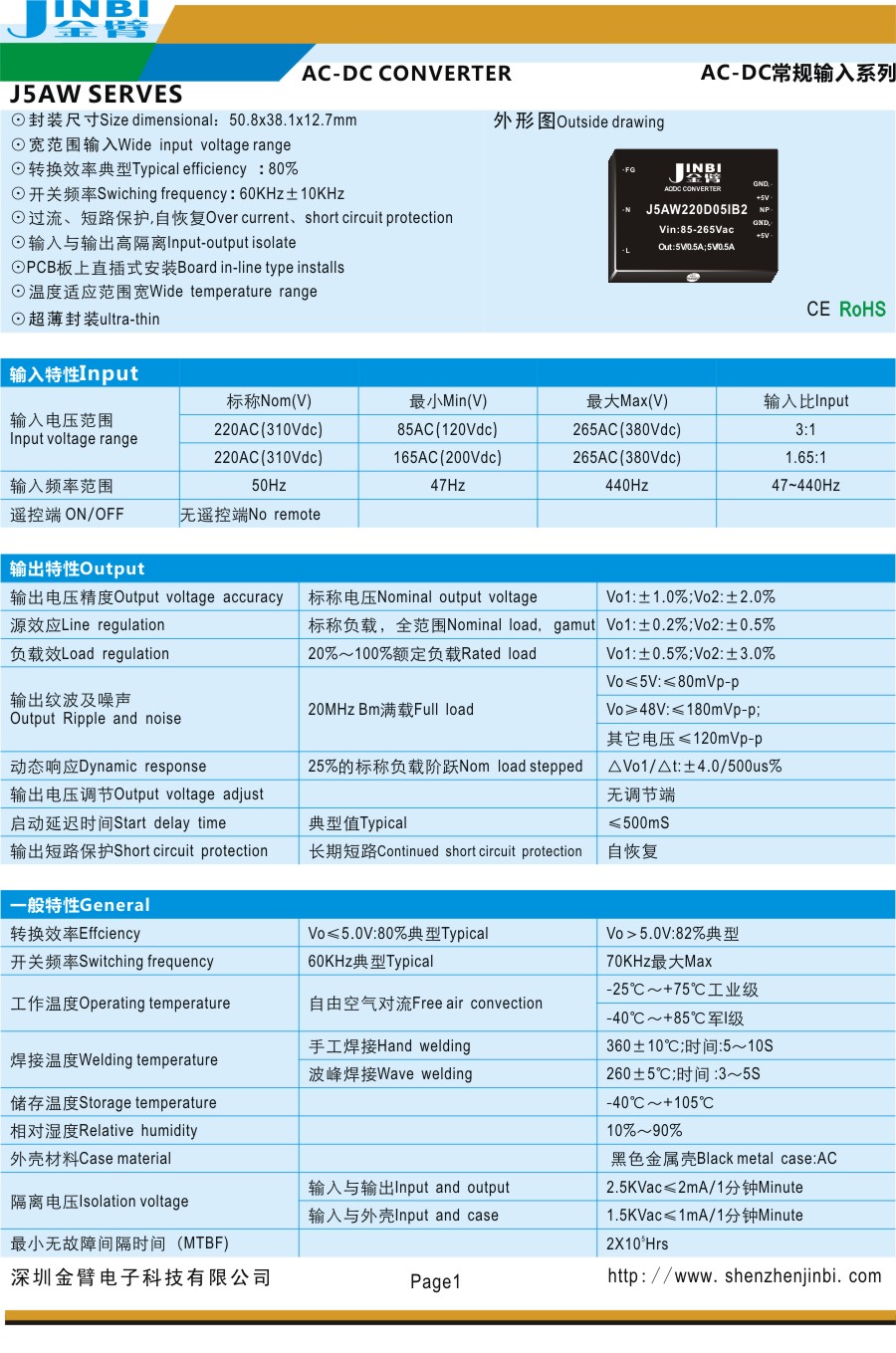 ⊙开关频率Swiching frequency:60KHz±10KHz