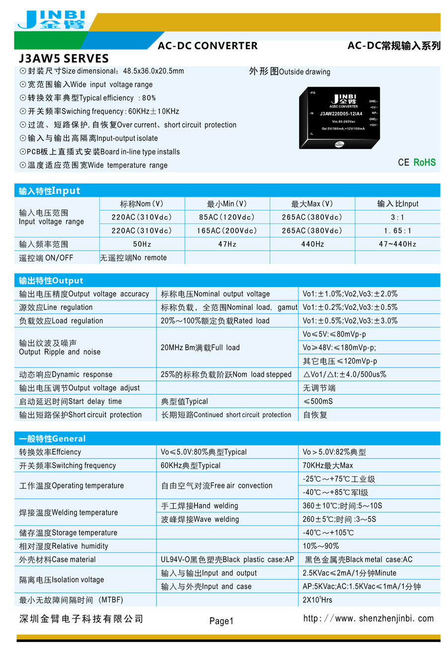 ⊙开关频率Swiching frequency:60KHz±10KHz
